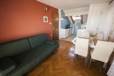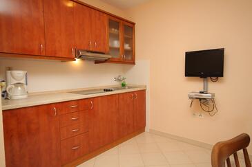 Ferienwohnung bietet Platz für 4 Gäste. Die Betten sind in Schlafzimmern, die es 1 gibt, und in Wohnzimmer, innerhalb einer Gesamtfläche von 37m2, angeordnet. Die Gäste haben eine eigene Terrasse zur Verfügung, auf der sie in warmen Sommernächten genießen können. Das Apartment bietet Meerblick. Es ist erlaubt, Speisen auf dem Gemeinschafts-Grill vorzubereiten. In der Unterkunftseinheit besteht die Möglichkeit des Mitbringens von Haustieren gegen Aufpreis.