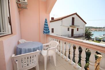 Ferienwohnung bietet Platz für 7 Gäste. Die Betten sind in Schlafzimmern, die es 3 gibt, innerhalb einer Gesamtfläche von 62m2, angeordnet. Die Gäste haben eine eigene Terrasse zur Verfügung, auf der sie in warmen Sommernächten genießen können. Das Apartment bietet Meerblick. Es ist erlaubt, Speisen auf dem Gemeinschafts-Grill vorzubereiten. In der Unterkunftseinheit besteht die Möglichkeit des Mitbringens von Haustieren, und die Dienstleistung ist im Preis der Unterkunft enthalten.