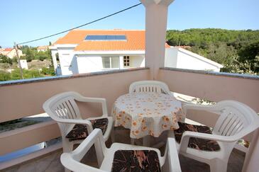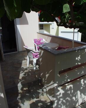 Ferienwohnung bietet Platz für 4 Gäste. Die Betten sind in Schlafzimmern, die es 2 gibt, innerhalb einer Gesamtfläche von 32m2, angeordnet. Die Gäste haben eine eigene Terrasse zur Verfügung, auf der sie in warmen Sommernächten genießen können. Das Apartment bietet Meerblick. Es ist erlaubt, Speisen auf dem Gemeinschafts-Grill vorzubereiten.