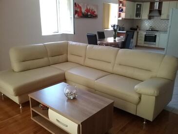 Ferienwohnung bietet Platz für 4 Gäste. Die Betten sind in Schlafzimmern, die es 1 gibt, und in Wohnzimmer, innerhalb einer Gesamtfläche von 51m2, angeordnet. Die Gäste haben eine eigene Terrasse zur Verfügung, auf der sie in warmen Sommernächten genießen können. Das Apartment bietet Meerblick. Es ist erlaubt, Speisen auf dem Gemeinschafts-Grill vorzubereiten.