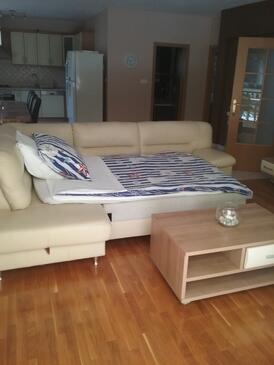 Ferienwohnung bietet Platz für 4 Gäste. Die Betten sind in Schlafzimmern, die es 1 gibt, und in Wohnzimmer, innerhalb einer Gesamtfläche von 51m2, angeordnet. Die Gäste haben eine eigene Terrasse zur Verfügung, auf der sie in warmen Sommernächten genießen können. Das Apartment bietet Meerblick. Es ist erlaubt, Speisen auf dem Gemeinschafts-Grill vorzubereiten.