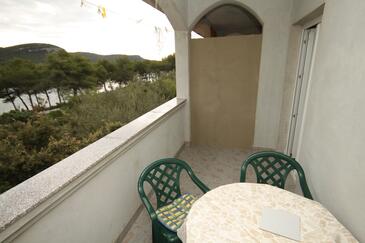 Ferienwohnung bietet Platz für 2 Gäste. Die Betten sind in Schlafzimmern, die es 1 gibt, innerhalb einer Gesamtfläche von 24m2, angeordnet. Die Gäste haben eine eigene Terrasse zur Verfügung, auf der sie in warmen Sommernächten genießen können. Das Apartment bietet Meerblick. Es ist erlaubt, Speisen auf dem Gemeinschafts-Grill vorzubereiten. In der Unterkunftseinheit besteht die Möglichkeit des Mitbringens von Haustieren gegen Aufpreis.