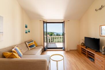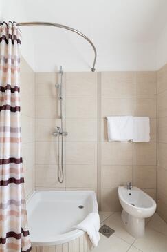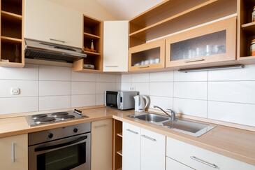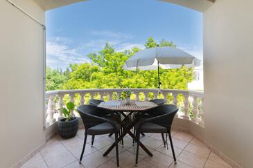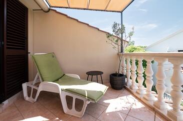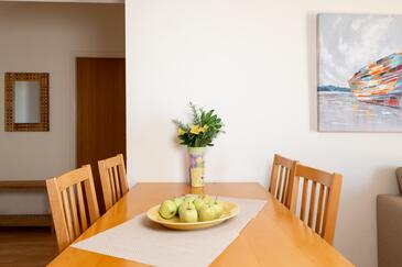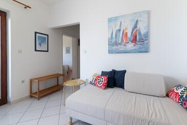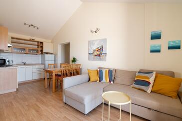 Ferienwohnung bietet Platz für 5 Gäste. Die Betten sind in Schlafzimmern, die es 2 gibt, und in Wohnzimmer, innerhalb einer Gesamtfläche von 49m2, angeordnet. Die Gäste haben eine eigene Terrasse zur Verfügung, auf der sie in warmen Sommernächten genießen können. Das Apartment bietet Meerblick. Es ist erlaubt, Speisen auf dem Gemeinschafts-Grill vorzubereiten.