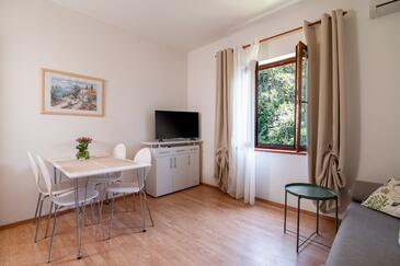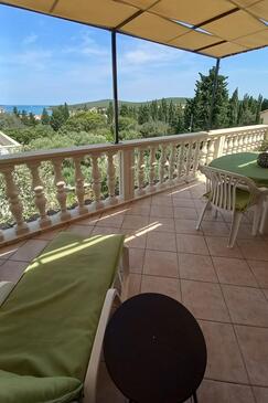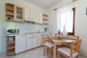 Ferienwohnung bietet Platz für 5 Gäste. Die Betten sind in Schlafzimmern, die es 2 gibt, und in Wohnzimmer, innerhalb einer Gesamtfläche von 49m2, angeordnet. Die Gäste haben eine eigene Terrasse zur Verfügung, auf der sie in warmen Sommernächten genießen können. Das Apartment bietet Meerblick. Es ist erlaubt, Speisen auf dem Gemeinschafts-Grill vorzubereiten.