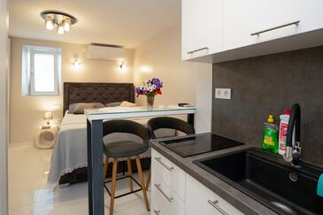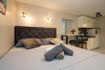 Ferienwohnung bietet Platz für 5 Gäste. Die Betten sind in Schlafzimmern, die es 2 gibt, innerhalb einer Gesamtfläche von 31m2, angeordnet. Das Apartment bietet Meerblick. Es ist erlaubt, Speisen auf dem Gemeinschafts-Grill vorzubereiten. Die reservierte Unterkunftseinheit verfügt über einen gemeinsame Terrasse.