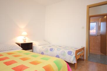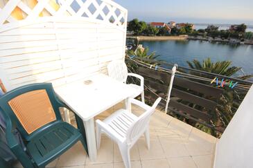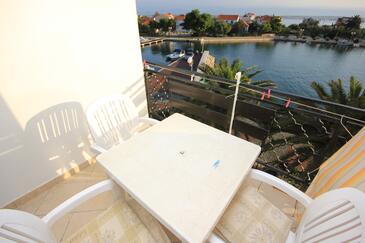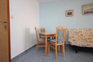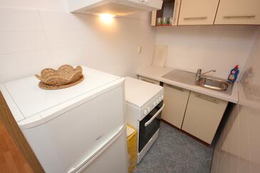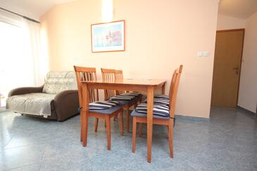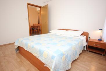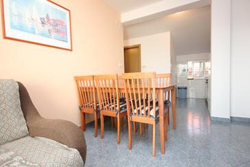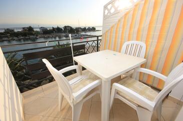 Ferienwohnung bietet Platz für 5 Gäste. Die Betten sind in Schlafzimmern, die es 2 gibt, innerhalb einer Gesamtfläche von 52m2, angeordnet. Die Gäste haben eine eigene Terrasse zur Verfügung, auf der sie in warmen Sommernächten genießen können. Das Apartment bietet Meerblick. Es ist erlaubt, Speisen auf dem Gemeinschafts-Grill vorzubereiten.