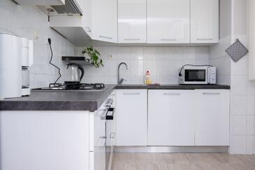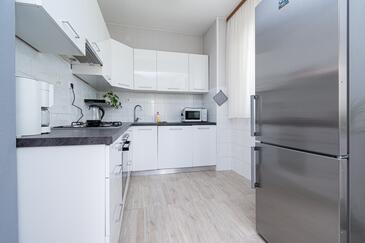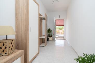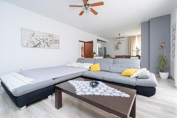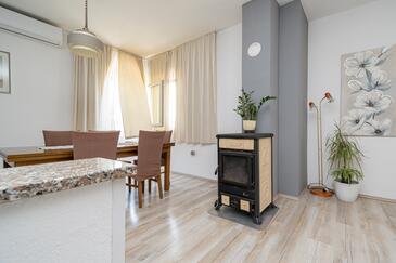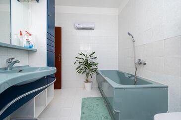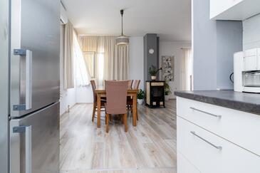 Haus bietet Platz für 8 Gäste. Die Betten sind in Schlafzimmern, die es 3 gibt, und in Wohnzimmer, innerhalb einer Gesamtfläche von 107m2, angeordnet. Die Gäste haben eine eigene Terrasse zur Verfügung, auf der sie in warmen Sommernächten genießen können. Das Haus bietet Meerblick. Es ist erlaubt, Speisen auf dem Gemeinschafts-Grill vorzubereiten. In der Unterkunftseinheit besteht die Möglichkeit des Mitbringens von Haustieren, und die Dienstleistung ist im Preis der Unterkunft enthalten.