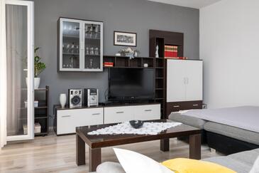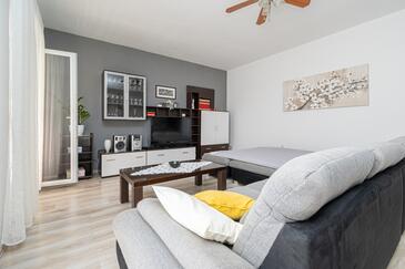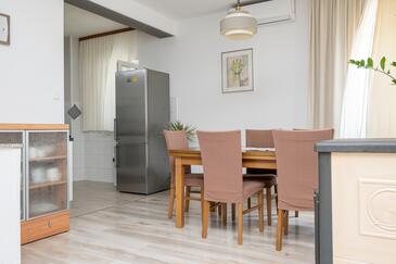 Haus bietet Platz für 8 Gäste. Die Betten sind in Schlafzimmern, die es 3 gibt, und in Wohnzimmer, innerhalb einer Gesamtfläche von 107m2, angeordnet. Die Gäste haben eine eigene Terrasse zur Verfügung, auf der sie in warmen Sommernächten genießen können. Das Haus bietet Meerblick. Es ist erlaubt, Speisen auf dem Gemeinschafts-Grill vorzubereiten. In der Unterkunftseinheit besteht die Möglichkeit des Mitbringens von Haustieren, und die Dienstleistung ist im Preis der Unterkunft enthalten.