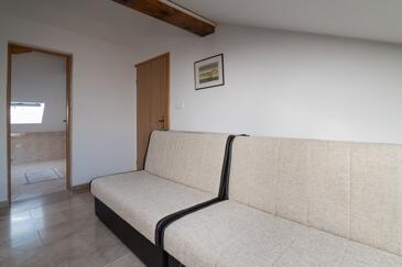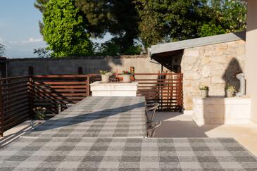 Ferienwohnung bietet Platz für 5 Gäste. Die Betten sind in Schlafzimmern, die es 3 gibt, innerhalb einer Gesamtfläche von 60m2, angeordnet. Die Gäste haben eine eigene Terrasse zur Verfügung, auf der sie in warmen Sommernächten genießen können. Das Apartment bietet Meerblick. Es ist erlaubt, Speisen auf dem Gemeinschafts-Grill vorzubereiten.