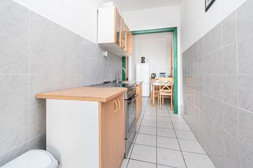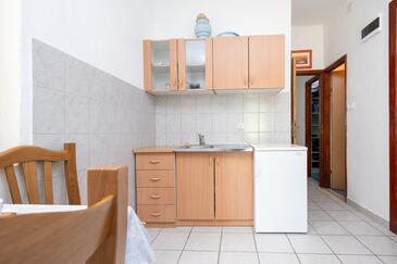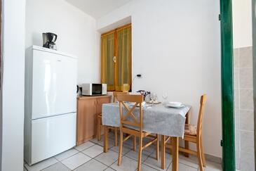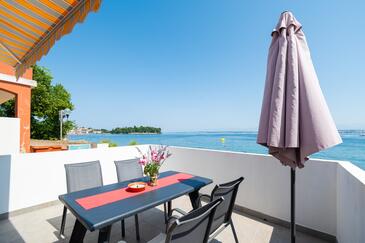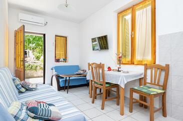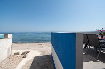 Haus bietet Platz für 6 Gäste. Die Betten sind in Schlafzimmern, die es 2 gibt, innerhalb einer Gesamtfläche von 73m2, angeordnet. Die Gäste haben eine eigene Terrasse zur Verfügung, auf der sie in warmen Sommernächten genießen können. Das Haus bietet Meerblick. Es ist erlaubt, Speisen auf dem Gemeinschafts-Grill vorzubereiten.