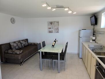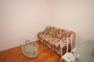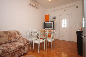 Ferienwohnung bietet Platz für 4 Gäste. Die Betten sind in Schlafzimmern, die es 1 gibt, und in Wohnzimmer, innerhalb einer Gesamtfläche von 44m2, angeordnet. Die Gäste haben eine eigene Terrasse zur Verfügung, auf der sie in warmen Sommernächten genießen können. Das Apartment bietet Meerblick. Es ist erlaubt, Speisen auf dem Gemeinschafts-Grill vorzubereiten.