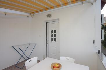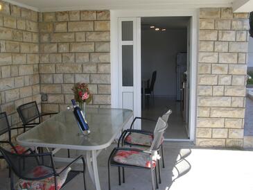 Ferienwohnung bietet Platz für 6 Gäste. Die Betten sind in Schlafzimmern, die es 2 gibt, und in Wohnzimmer, innerhalb einer Gesamtfläche von 59m2, angeordnet. Die Gäste haben eine eigene Terrasse zur Verfügung, auf der sie in warmen Sommernächten genießen können. Das Apartment bietet Meerblick. Es ist erlaubt, Speisen auf dem Gemeinschafts-Grill vorzubereiten.