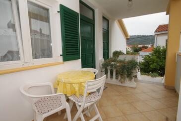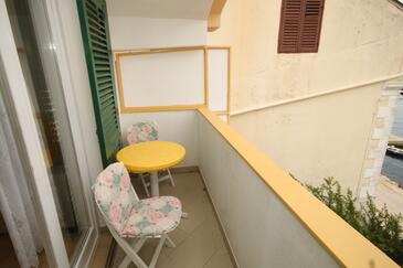 Ferienwohnung bietet Platz für 3 Gäste. Die Betten sind in Schlafzimmern, die es 1 gibt, und in Wohnzimmer, innerhalb einer Gesamtfläche von 29m2, angeordnet. Die Gäste haben eine eigene Terrasse zur Verfügung, auf der sie in warmen Sommernächten genießen können. Das Apartment bietet Meerblick. Es ist erlaubt, Speisen auf dem Gemeinschafts-Grill vorzubereiten.
