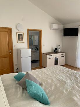 Ferienwohnung bietet Platz für 6 Gäste. Die Betten sind in Schlafzimmern, die es 3 gibt, innerhalb einer Gesamtfläche von 86m2, angeordnet. Die Gäste haben eine eigene Terrasse zur Verfügung, auf der sie in warmen Sommernächten genießen können. Das Apartment bietet Meerblick. Für vollen Genuss und Entspannung gibt es einen privaten Grill für Gäste dieser Unterkunft. In der Unterkunftseinheit besteht die Möglichkeit des Mitbringens von Haustieren, und die Dienstleistung ist im Preis der Unterkunft enthalten.