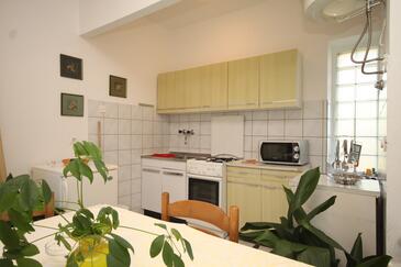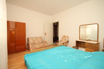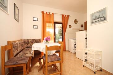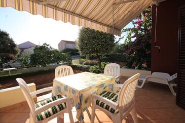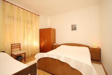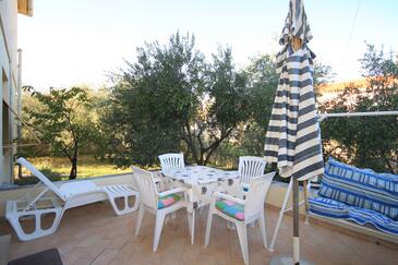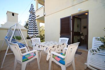 Ferienwohnung bietet Platz für 5 Gäste. Die Betten sind in Schlafzimmern, die es 2 gibt, innerhalb einer Gesamtfläche von 41m2, angeordnet. Die Gäste haben eine eigene Terrasse zur Verfügung, auf der sie in warmen Sommernächten genießen können. Es ist erlaubt, Speisen auf dem Gemeinschafts-Grill vorzubereiten.