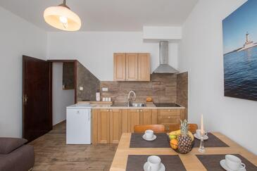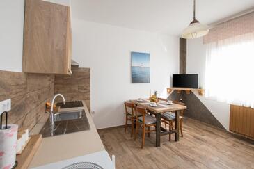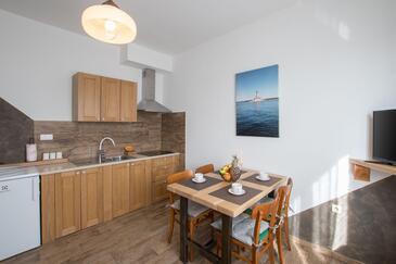 Ferienwohnung bietet Platz für 3 Gäste. Die Betten sind in Schlafzimmern, die es 1 gibt, und in Wohnzimmer, innerhalb einer Gesamtfläche von 34m2, angeordnet. Die Gäste haben eine eigene Terrasse zur Verfügung, auf der sie in warmen Sommernächten genießen können.