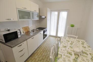 Ferienwohnung bietet Platz für 4 Gäste. Die Betten sind in Schlafzimmern, die es 2 gibt, innerhalb einer Gesamtfläche von 94m2, angeordnet. Die Gäste haben eine eigene Terrasse zur Verfügung, auf der sie in warmen Sommernächten genießen können.