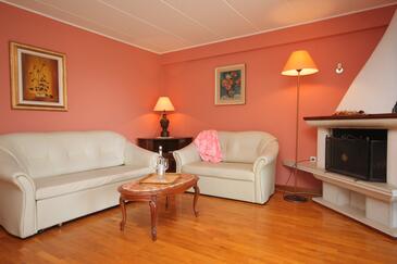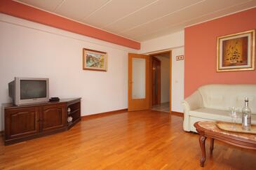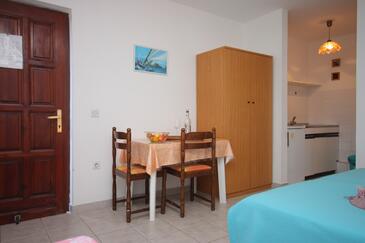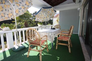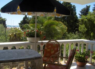 Ferienwohnung bietet Platz für 5 Gäste. Die Betten sind in Schlafzimmern, die es 2 gibt, innerhalb einer Gesamtfläche von 56m2, angeordnet. Die Gäste haben eine eigene Terrasse zur Verfügung, auf der sie in warmen Sommernächten genießen können. Das Apartment bietet Meerblick. In der gebuchten Unterkunftseinheit zahlt man am Ort ein Depositum ( der Preis ist an der Internetseite angeführt ).