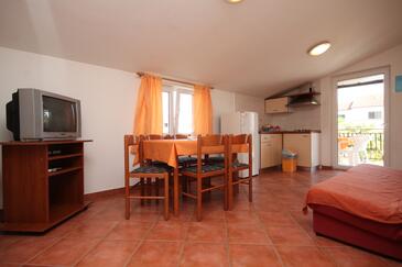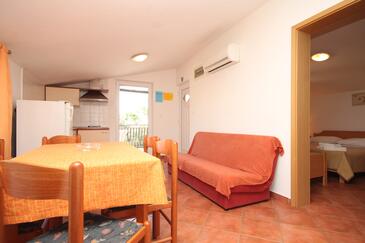 Ferienwohnung bietet Platz für 3 Gäste. Die Betten sind in Schlafzimmern, die es 1 gibt, und in Esszimmer, innerhalb einer Gesamtfläche von 18m2, angeordnet. Die Gäste haben eine eigene Terrasse zur Verfügung, auf der sie in warmen Sommernächten genießen können. Es ist erlaubt, Speisen auf dem Gemeinschafts-Grill vorzubereiten. In der Unterkunftseinheit besteht die Möglichkeit des Mitbringens von Haustieren gegen Aufpreis.