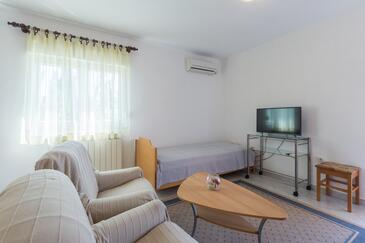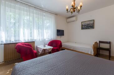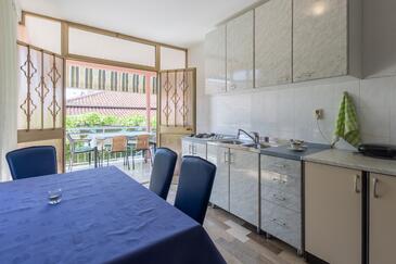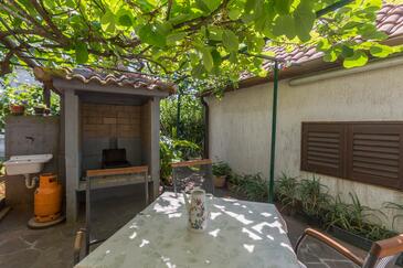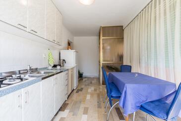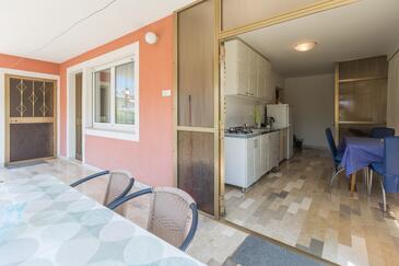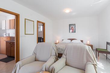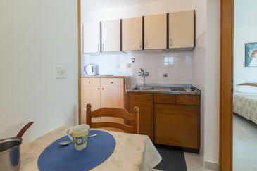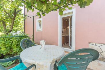 Ferienwohnung bietet Platz für 4 Gäste. Die Betten sind in Schlafzimmern, die es 2 gibt, innerhalb einer Gesamtfläche von 68m2, angeordnet. Die Gäste haben eine eigene Terrasse zur Verfügung, auf der sie in warmen Sommernächten genießen können. Es ist erlaubt, Speisen auf dem Gemeinschafts-Grill vorzubereiten.