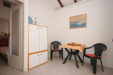 Haus bietet Platz für 2 Gäste. Die Betten sind in Schlafzimmern, die es 1 gibt, innerhalb einer Gesamtfläche von 16m2, angeordnet. Die Gäste haben eine eigene Terrasse zur Verfügung, auf der sie in warmen Sommernächten genießen können. In der gebuchten Unterkunftseinheit zahlt man am Ort ein Depositum ( der Preis ist an der Internetseite angeführt ).