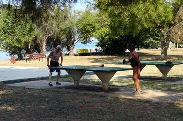 Haus bietet Platz für 10 Gäste. Die Betten sind in Schlafzimmern, die es 5 gibt, innerhalb einer Gesamtfläche von 111m2, angeordnet. Die Gäste haben eine eigene Terrasse zur Verfügung, auf der sie in warmen Sommernächten genießen können. Für vollen Genuss und Entspannung gibt es einen privaten Grill für Gäste dieser Unterkunft. Während ihres Aufenthalts können Gäste das gemeinsam zur Nutzung stehende Schwimmbad benutzen.