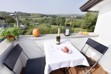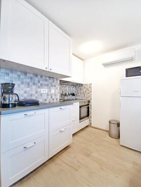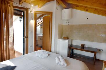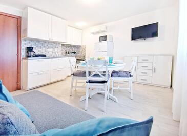 Ferienwohnung bietet Platz für 6 Gäste. Die Betten sind in Schlafzimmern, die es 3 gibt, innerhalb einer Gesamtfläche von 62m2, angeordnet. Die Gäste haben eine eigene Terrasse zur Verfügung, auf der sie in warmen Sommernächten genießen können. Es ist erlaubt, Speisen auf dem Gemeinschafts-Grill vorzubereiten.