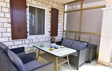 Ferienwohnung bietet Platz für 4 Gäste. Die Betten sind in Schlafzimmern, die es 1 gibt, und in Wohnzimmer, innerhalb einer Gesamtfläche von 55m2, angeordnet. Die Gäste haben eine eigene Terrasse zur Verfügung, auf der sie in warmen Sommernächten genießen können.