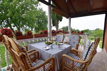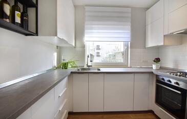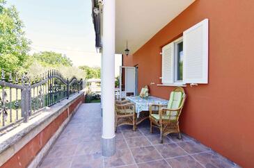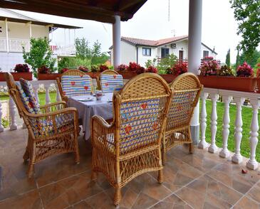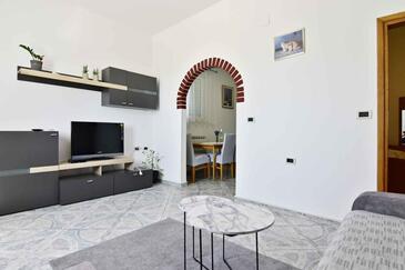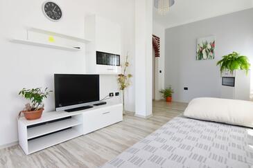 Ferienwohnung bietet Platz für 6 Gäste. Die Betten sind in Schlafzimmern, die es 2 gibt, und in Wohnzimmer, innerhalb einer Gesamtfläche von 68m2, angeordnet. Die Gäste haben eine eigene Terrasse zur Verfügung, auf der sie in warmen Sommernächten genießen können. Es ist erlaubt, Speisen auf dem Gemeinschafts-Grill vorzubereiten.
