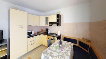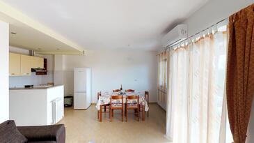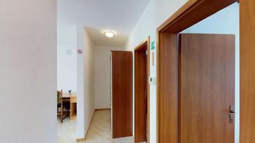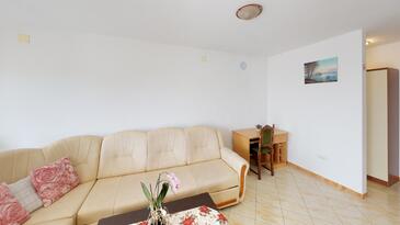 Ferienwohnung bietet Platz für 6 Gäste. Die Betten sind in Schlafzimmern, die es 2 gibt, und in Wohnzimmer, innerhalb einer Gesamtfläche von 55m2, angeordnet. Die Gäste haben eine eigene Terrasse zur Verfügung, auf der sie in warmen Sommernächten genießen können. Es ist erlaubt, Speisen auf dem Gemeinschafts-Grill vorzubereiten.