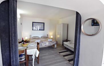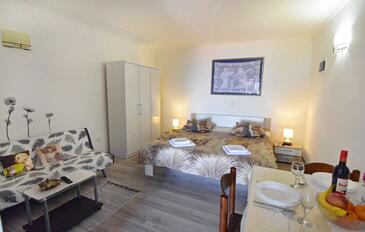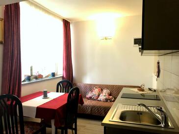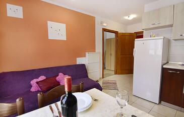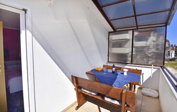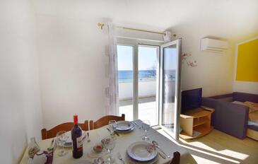 Ferienwohnung bietet Platz für 5 Gäste. Die Betten sind in Schlafzimmern, die es 2 gibt, und in Esszimmer, innerhalb einer Gesamtfläche von 57m2, angeordnet. Die Gäste haben einen eigenen Balkon zur Verfügung, auf der sie in warmen Sommernächten genießen können. Das Apartment bietet Meerblick. Es ist erlaubt, Speisen auf dem Gemeinschafts-Grill vorzubereiten.