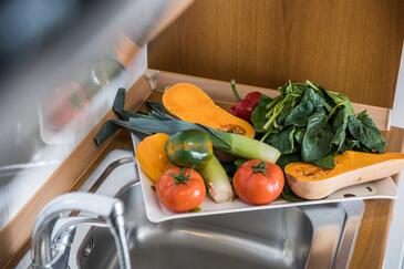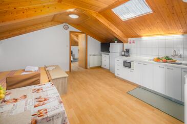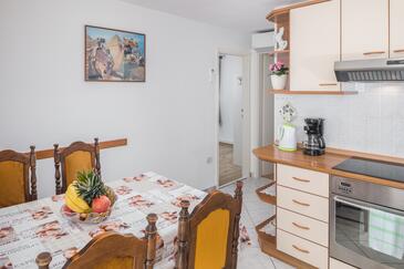 Ferienwohnung bietet Platz für 4 Gäste. Die Betten sind in Schlafzimmern, die es 2 gibt, innerhalb einer Gesamtfläche von 43m2, angeordnet. Die Gäste haben eine eigene Terrasse zur Verfügung, auf der sie in warmen Sommernächten genießen können. Das Apartment bietet Meerblick. In der Unterkunftseinheit besteht die Möglichkeit des Mitbringens von Haustieren gegen Aufpreis. Durch die Terrasse der gebuchten Unterkunftseinheit gehen auch andere Gäste oder Vermieter.