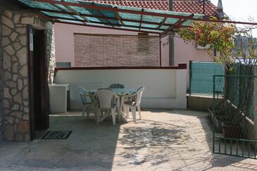 Ferienwohnung bietet Platz für 4 Gäste. Die Betten sind in Schlafzimmern, die es 2 gibt, innerhalb einer Gesamtfläche von 59m2, angeordnet. Die Gäste haben eine eigene Terrasse zur Verfügung, auf der sie in warmen Sommernächten genießen können. Das Apartment bietet Meerblick. Es ist erlaubt, Speisen auf dem Gemeinschafts-Grill vorzubereiten.