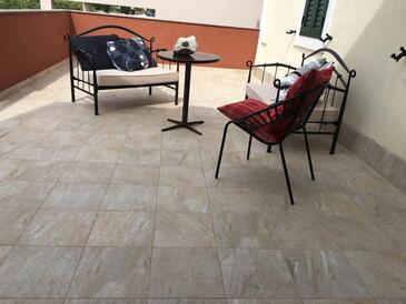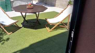 Ferienwohnung bietet Platz für 4 Gäste. Die Betten sind in Schlafzimmern, die es 2 gibt, innerhalb einer Gesamtfläche von 58m2, angeordnet. Die Gäste haben eine eigene Terrasse zur Verfügung, auf der sie in warmen Sommernächten genießen können. Das Apartment bietet Meerblick. Es ist erlaubt, Speisen auf dem Gemeinschafts-Grill vorzubereiten. In der Unterkunftseinheit besteht die Möglichkeit des Mitbringens von Haustieren gegen Aufpreis.