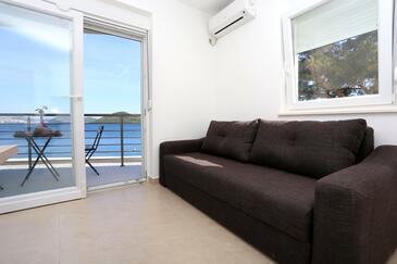 Ferienwohnung bietet Platz für 5 Gäste. Die Betten sind in Schlafzimmern, die es 1 gibt, und in Wohnzimmer, innerhalb einer Gesamtfläche von 39m2, angeordnet. Die Gäste haben eine eigene Terrasse zur Verfügung, auf der sie in warmen Sommernächten genießen können. Das Apartment bietet Meerblick.