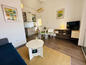 Ferienwohnung bietet Platz für 4 Gäste. Die Betten sind in Schlafzimmern, die es 1 gibt, und in Wohnzimmer, innerhalb einer Gesamtfläche von 31m2, angeordnet. Die Gäste haben einen eigenen Balkon zur Verfügung, auf der sie in warmen Sommernächten genießen können. Das Apartment bietet Meerblick. Es ist erlaubt, Speisen auf dem Gemeinschafts-Grill vorzubereiten.