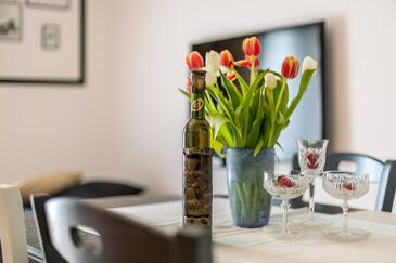 Haus bietet Platz für 7 Gäste. Die Betten sind in Schlafzimmern, die es 4 gibt, innerhalb einer Gesamtfläche von 128m2, angeordnet. Die Gäste haben eine eigene Terrasse zur Verfügung, auf der sie in warmen Sommernächten genießen können. Für vollen Genuss und Entspannung gibt es einen privaten Grill für Gäste dieser Unterkunft. Während ihres Aufenthalts können sich Gäste im privaten Schwimmbad entspannen. In der Unterkunftseinheit besteht die Möglichkeit des Mitbringens von Haustieren, und die Dienstleistung ist im Preis der Unterkunft enthalten.