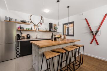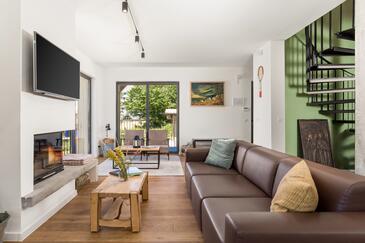 Haus bietet Platz für 8 Gäste. Die Betten sind in Schlafzimmern, die es 4 gibt, innerhalb einer Gesamtfläche von 121m2, angeordnet. Die Gäste haben eine eigene Terrasse zur Verfügung, auf der sie in warmen Sommernächten genießen können. Für vollen Genuss und Entspannung gibt es einen privaten Grill für Gäste dieser Unterkunft.