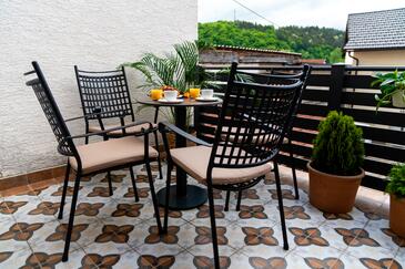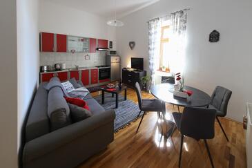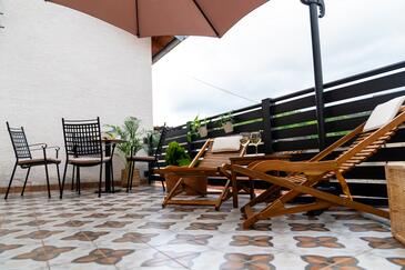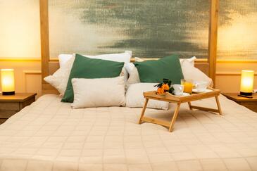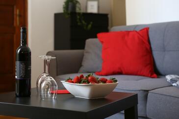 Ferienwohnung bietet Platz für 4 Gäste. Die Betten sind in Schlafzimmern, die es 1 gibt, und in Wohnzimmer, innerhalb einer Gesamtfläche von 51m2, angeordnet. Die Gäste haben eine eigene Terrasse zur Verfügung, auf der sie in warmen Sommernächten genießen können. Es ist erlaubt, Speisen auf dem Gemeinschafts-Grill vorzubereiten.