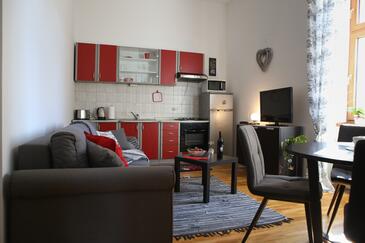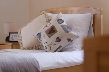 Ferienwohnung bietet Platz für 4 Gäste. Die Betten sind in Schlafzimmern, die es 1 gibt, und in Wohnzimmer, innerhalb einer Gesamtfläche von 51m2, angeordnet. Die Gäste haben eine eigene Terrasse zur Verfügung, auf der sie in warmen Sommernächten genießen können. Es ist erlaubt, Speisen auf dem Gemeinschafts-Grill vorzubereiten.