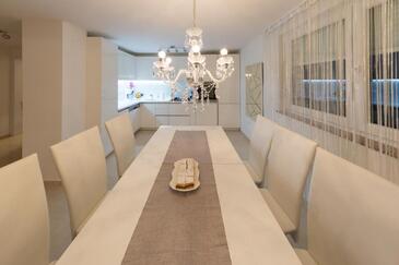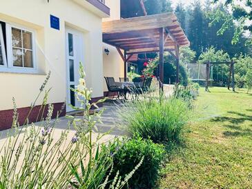Ferienwohnung bietet Platz für 5 Gäste. Die Betten sind in Schlafzimmern, die es 2 gibt, und in Wohnzimmer, innerhalb einer Gesamtfläche von 83m2, angeordnet. Die Gäste haben eine eigene Terrasse zur Verfügung, auf der sie in warmen Sommernächten genießen können. Es ist erlaubt, Speisen auf dem Gemeinschafts-Grill vorzubereiten.