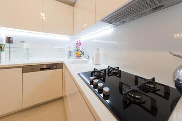Ferienwohnung bietet Platz für 5 Gäste. Die Betten sind in Schlafzimmern, die es 2 gibt, und in Wohnzimmer, innerhalb einer Gesamtfläche von 83m2, angeordnet. Die Gäste haben eine eigene Terrasse zur Verfügung, auf der sie in warmen Sommernächten genießen können. Es ist erlaubt, Speisen auf dem Gemeinschafts-Grill vorzubereiten.