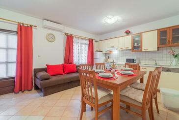 Ferienwohnung bietet Platz für 5 Gäste. Die Betten sind in Schlafzimmern, die es 2 gibt, und in Wohnzimmer, innerhalb einer Gesamtfläche von 41m2, angeordnet. Die Gäste haben eine eigene Terrasse zur Verfügung, auf der sie in warmen Sommernächten genießen können. Für vollen Genuss und Entspannung gibt es einen privaten Grill für Gäste dieser Unterkunft. In der gebuchten Unterkunftseinheit zahlt man am Ort ein Depositum ( der Preis ist an der Internetseite angeführt ).