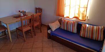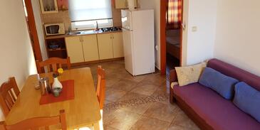 Ferienwohnung bietet Platz für 4 Gäste. Die Betten sind in Schlafzimmern, die es 2 gibt, innerhalb einer Gesamtfläche von 49m2, angeordnet. Die Gäste haben eine eigene Terrasse zur Verfügung, auf der sie in warmen Sommernächten genießen können. Es ist erlaubt, Speisen auf dem Gemeinschafts-Grill vorzubereiten.