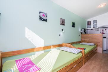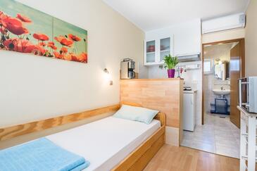 Ferienwohnung bietet Platz für 4 Gäste. Die Betten sind in Schlafzimmern, die es 1 gibt, und in Wohnzimmer, innerhalb einer Gesamtfläche von 40m2, angeordnet. Die Gäste haben einen eigenen Balkon zur Verfügung, auf der sie in warmen Sommernächten genießen können. Es ist erlaubt, Speisen auf dem Gemeinschafts-Grill vorzubereiten.