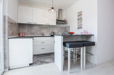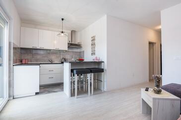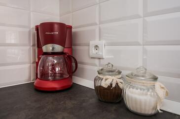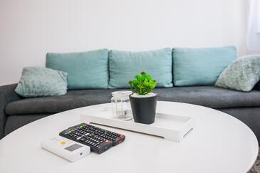 Ferienwohnung bietet Platz für 5 Gäste. Die Betten sind in Schlafzimmern, die es 2 gibt, und in Wohnzimmer, innerhalb einer Gesamtfläche von 48m2, angeordnet. Die Gäste haben eine eigene Terrasse zur Verfügung, auf der sie in warmen Sommernächten genießen können. In der Unterkunftseinheit besteht die Möglichkeit des Mitbringens von Haustieren gegen Aufpreis. In der gebuchten Unterkunftseinheit zahlt man am Ort ein Depositum ( der Preis ist an der Internetseite angeführt ).