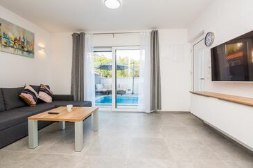 Ferienwohnung bietet Platz für 6 Gäste. Die Betten sind in Schlafzimmern, die es 2 gibt, und in Wohnzimmer, innerhalb einer Gesamtfläche von 65m2, angeordnet. Die Gäste haben eine eigene Terrasse zur Verfügung, auf der sie in warmen Sommernächten genießen können. Während ihres Aufenthalts können sich Gäste im privaten Schwimmbad entspannen. In der gebuchten Unterkunftseinheit zahlt man am Ort ein Depositum ( der Preis ist an der Internetseite angeführt ).