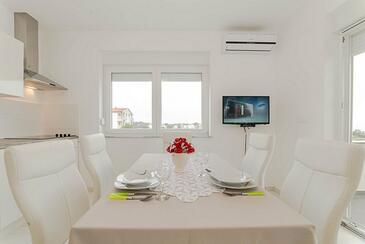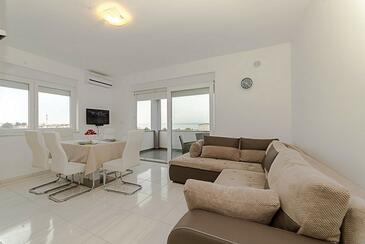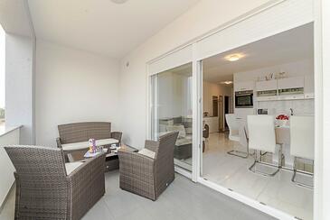 Ferienwohnung bietet Platz für 6 Gäste. Die Betten sind in Schlafzimmern, die es 2 gibt, und in Wohnzimmer, innerhalb einer Gesamtfläche von 55m2, angeordnet. Die Gäste haben einen eigenen Balkon zur Verfügung, auf der sie in warmen Sommernächten genießen können. Das Apartment bietet Meerblick. Es ist erlaubt, Speisen auf dem Gemeinschafts-Grill vorzubereiten.
