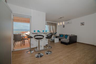 Ferienwohnung bietet Platz für 6 Gäste. Die Betten sind in Schlafzimmern, die es 2 gibt, und in Wohnzimmer, innerhalb einer Gesamtfläche von 75m2, angeordnet. Die Gäste haben einen eigenen Balkon zur Verfügung, auf der sie in warmen Sommernächten genießen können. Das Apartment bietet Meerblick. Es ist erlaubt, Speisen auf dem Gemeinschafts-Grill vorzubereiten.
