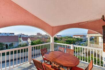 Ferienwohnung bietet Platz für 6 Gäste. Die Betten sind in Schlafzimmern, die es 2 gibt, und in Wohnzimmer, innerhalb einer Gesamtfläche von 49m2, angeordnet. Die Gäste haben eine eigene Terrasse zur Verfügung, auf der sie in warmen Sommernächten genießen können. Das Apartment bietet Meerblick. Es ist erlaubt, Speisen auf dem Gemeinschafts-Grill vorzubereiten.